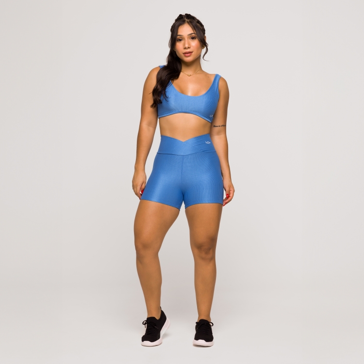 • Short Fitness Feminino Academia Poliamida Azul Cós Cruzado