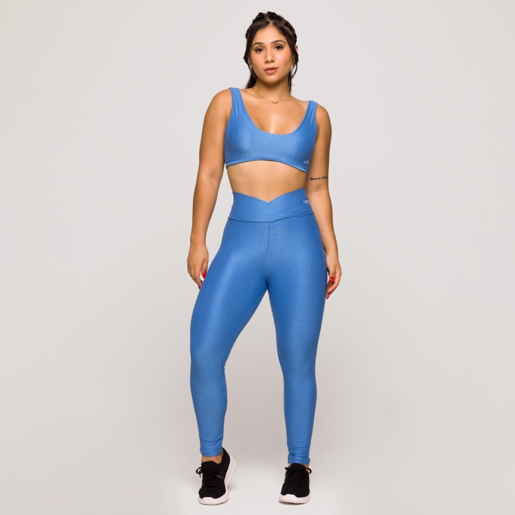 • Legging Fitness Feminina Academia Poliamida Cós Cruzado Azul