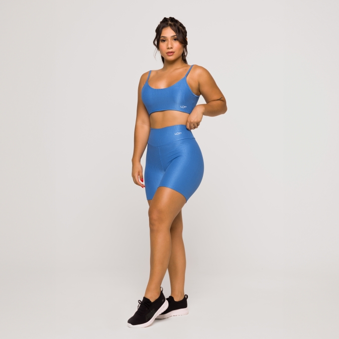 • Short Fitness Feminino Academia Poliamida Azul Básico