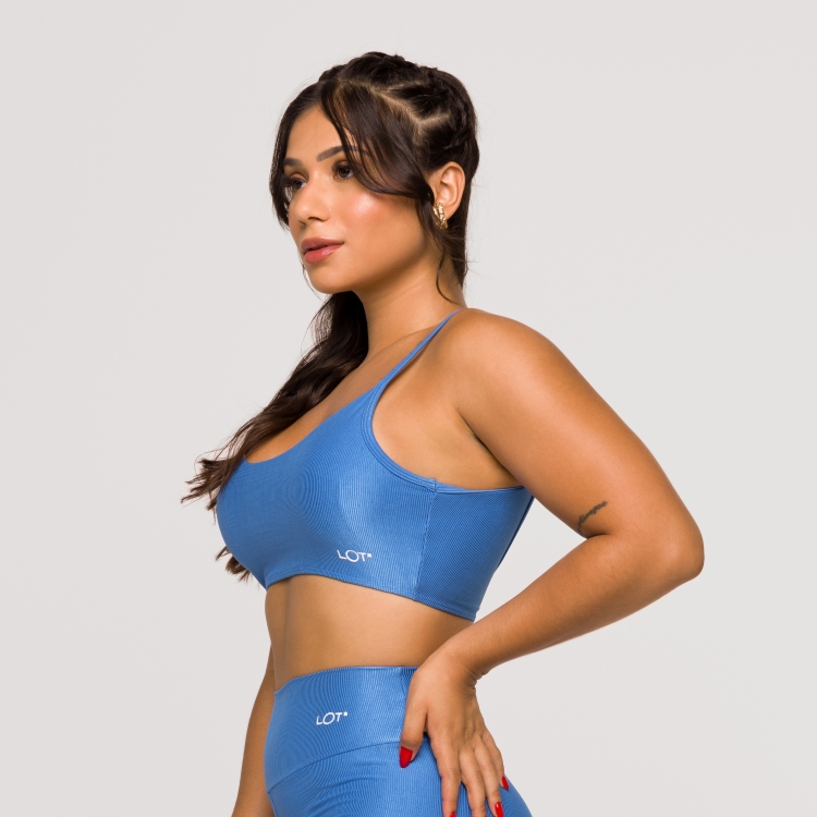 • Top Academia Fitness Feminino Azul Poliamida Costas Abertas