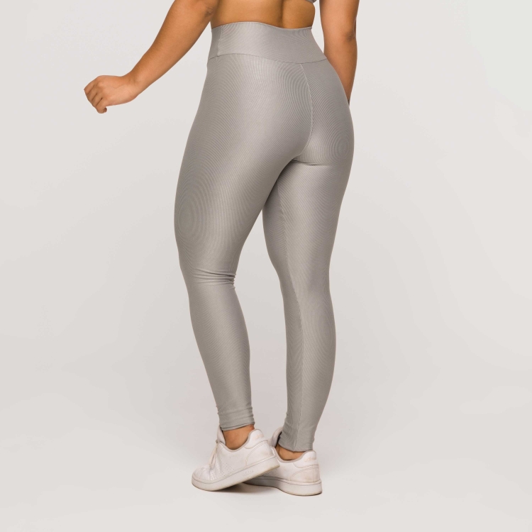 • Legging Fitness Feminina Academia Poliamida Textura Cinza Prata