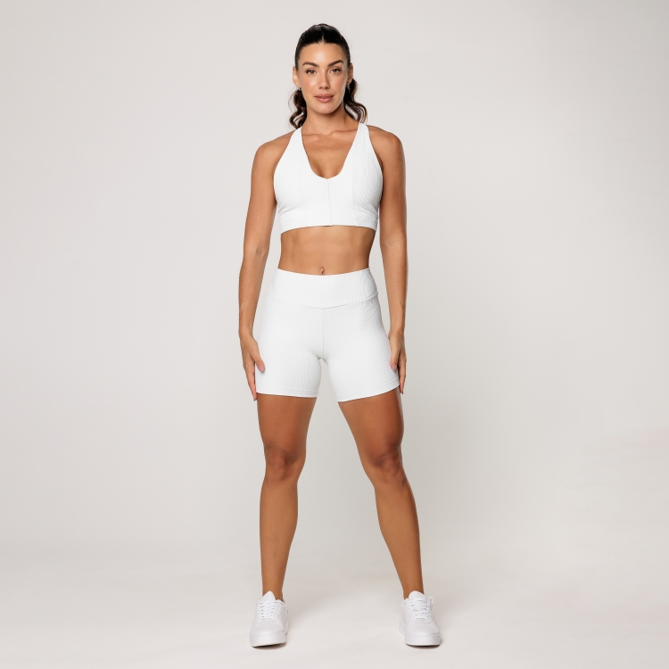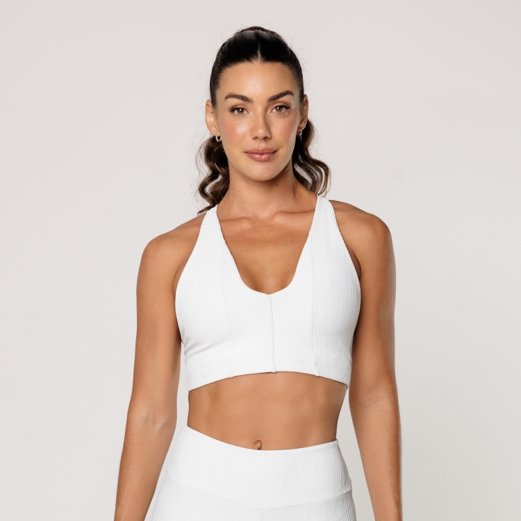 Top Off White Fitness Academia Feminino Decote V Texturizado