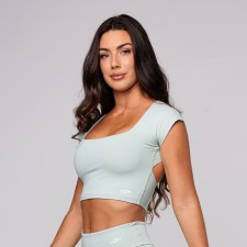 Top Poliamida Feminino Costas Aberta Decote Quadrado Aloe Verde