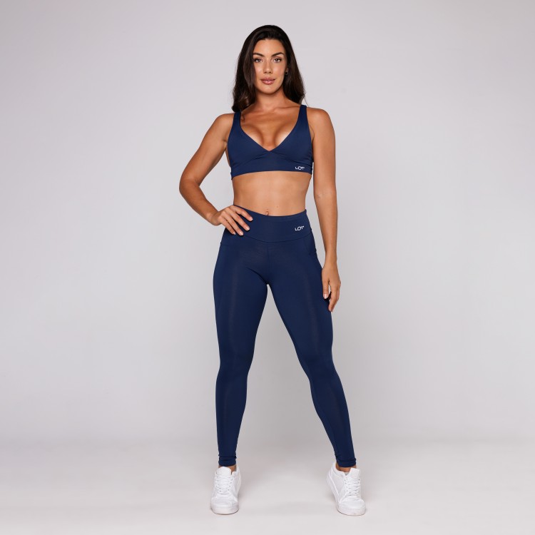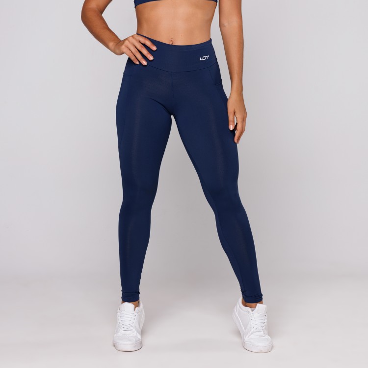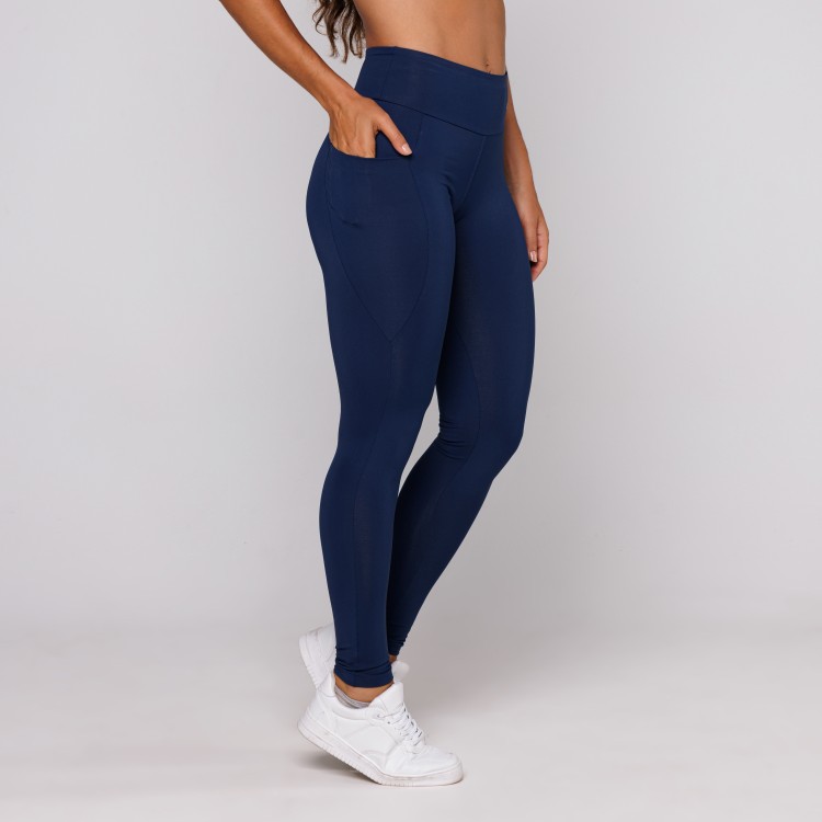 Calça Legging Poliamida Premium Com Bolso Azul Marinho