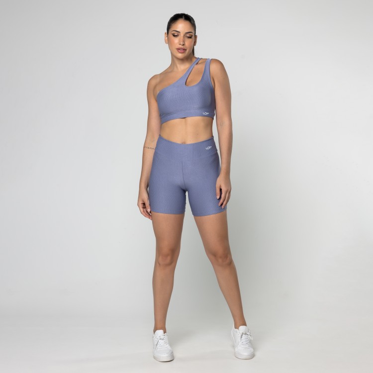 Short Fitness Feminino Academia Poliamida Azul Cós Cruzado