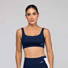 Top Poliamida Feminino Costas Aberta Decote Quadrado Azul Marinho