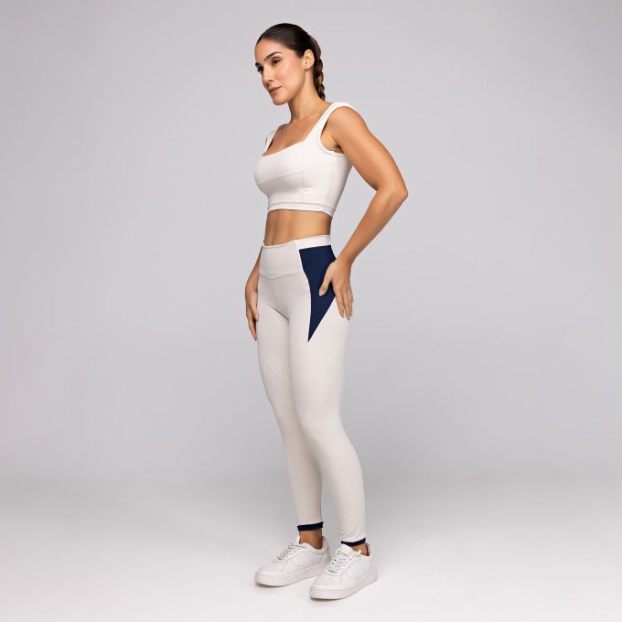 Calça Legging Preta com cós Off White Fitness Poliamida