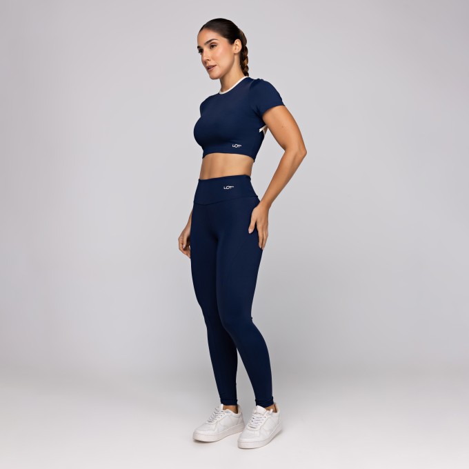 Top Poliamida Costas Aberta Alta Sustentação com Manga Curta Azul