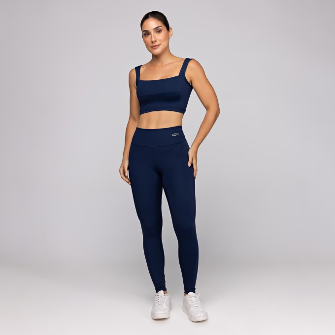 Calça Legging Poliamida Feminina com Bolso Atrás Empina Bumbum Azul
