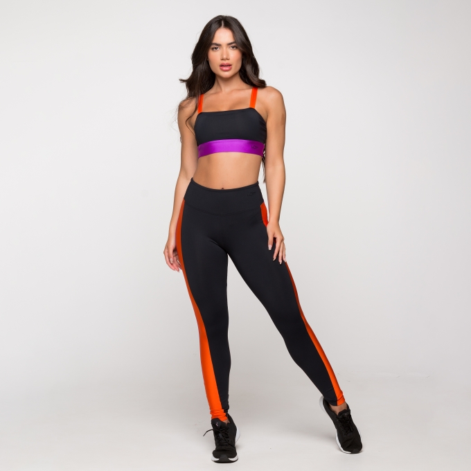 Calça Legging Poliamida com Faixas Laranja e Roxo Paris