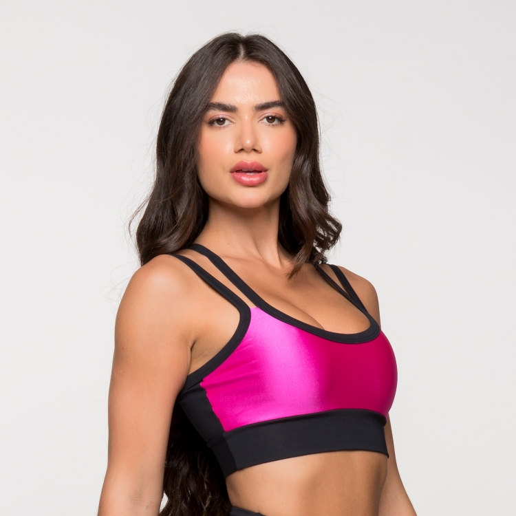 Top Fitness Poliamida com Detalhe nas Costas Cruzada Rosa Pink