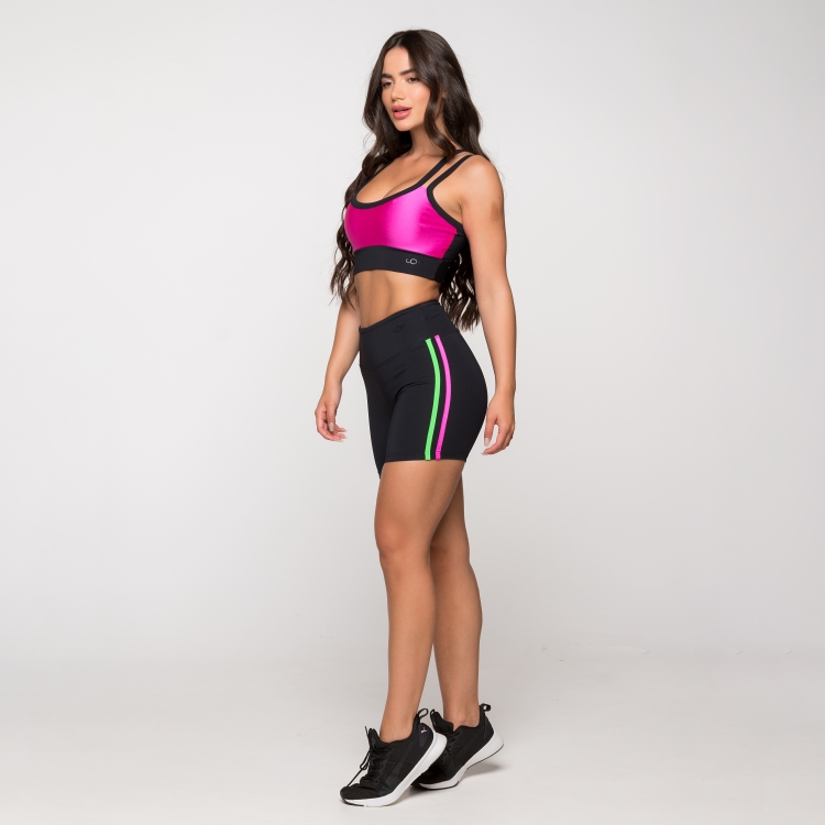 Short Fitness Poliamida com Listra Rosa e Verde Berlim