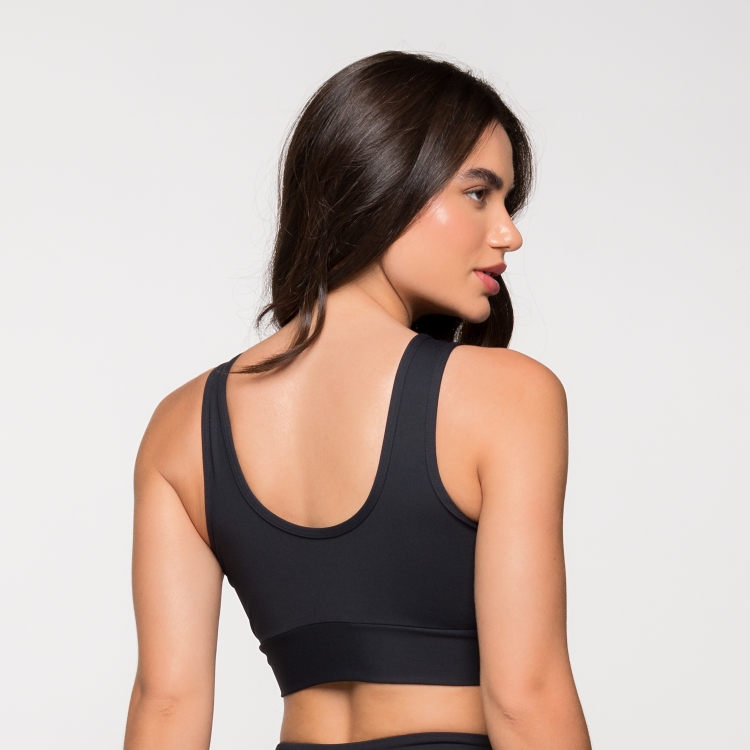 Top Fitness Feminino Academia Poliamida Arco Costas Aberta Preto