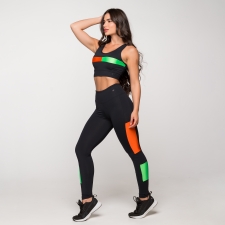 Calça Legging Academia Poliamida Recorte Laranja Verde Madri